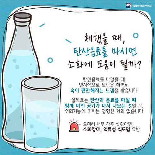 참고로 속이 더부룩해 탄산음료를 자주 찾으시는 분은 식품의약품 안전처에서 제공한 카드 뉴스 내용도 참고하시기 바랍니다. 사소한 습관을 바꾸는 것만으로도 좋은 효과를 보실 수 있습니다.