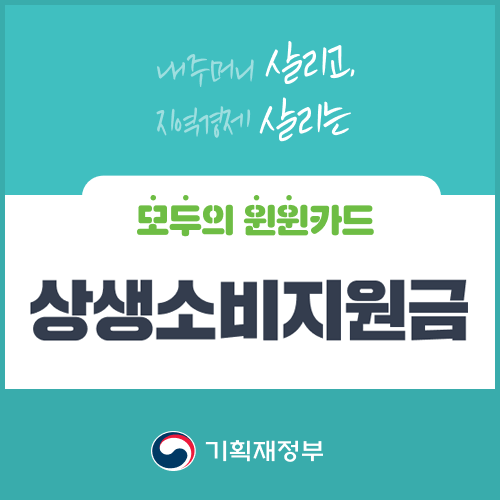 '내 주머니 살리고, 지역 경제 살리는 모두의 윈윈카드'라는 캐치프레이즈 아래 시행되는 상생 소비지원금은 올해 4월부터 6월까지 사용한 신용카드 평균 사용액보다 더 많은 금액을 지출했을 경우 초과액 중 일부를 현금으로 돌려줍니다.