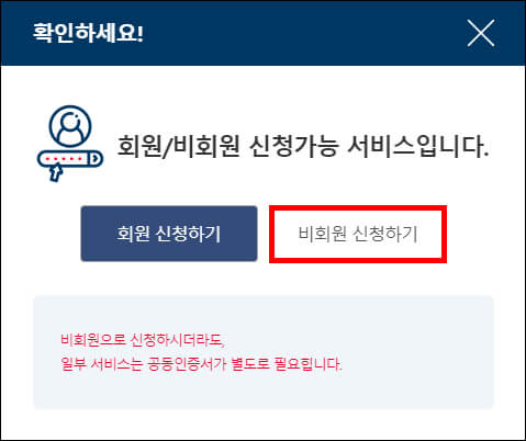 ③ 저는 비회원으로 신청해 보았습니다.