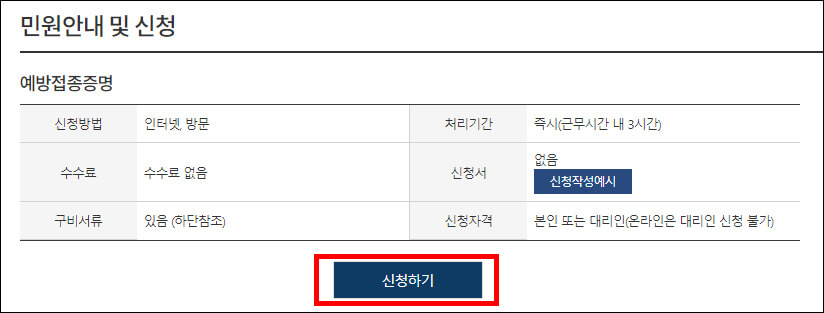 ② 민원안내 및 신청사항이 나옵니다. 신청하기 버튼을 누릅니다.