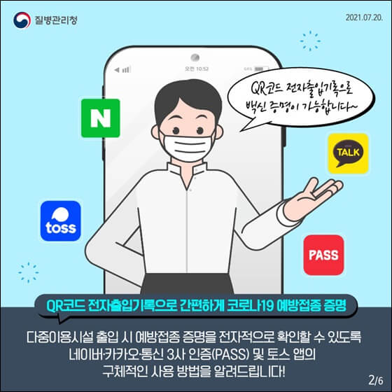 일상생활을 하면서 전자 출입기록을 남기는 일이 많아지고 있으므로 식당이나 사람이 붐비는 백화점, 공공시설을 이용할 때 전자 예방 접종 증명서를 쓰는 게 가장 편리하지 않을까 싶습니다.