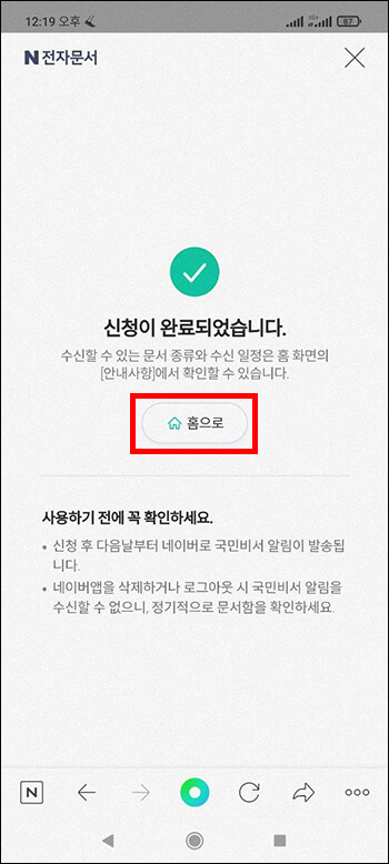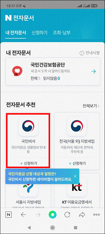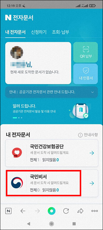 ⑫ 홈으로 돌아오면 전자문서 화면에 국민비서 메뉴가 추가된 것을 볼 수 있습니다.