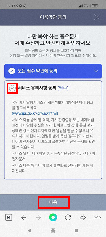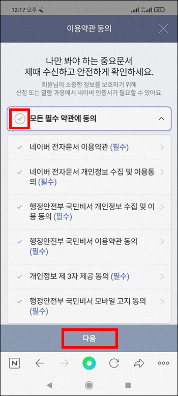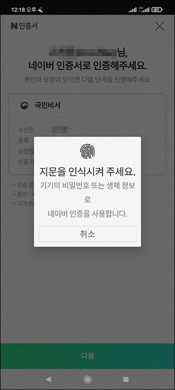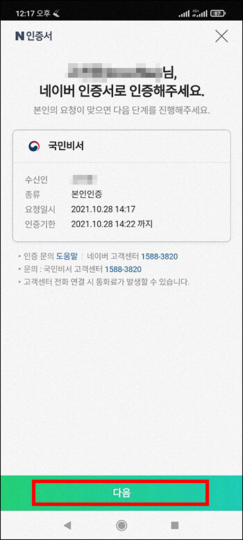 ⑥ 네이버 인증서로 인증단계를 거칩니다.