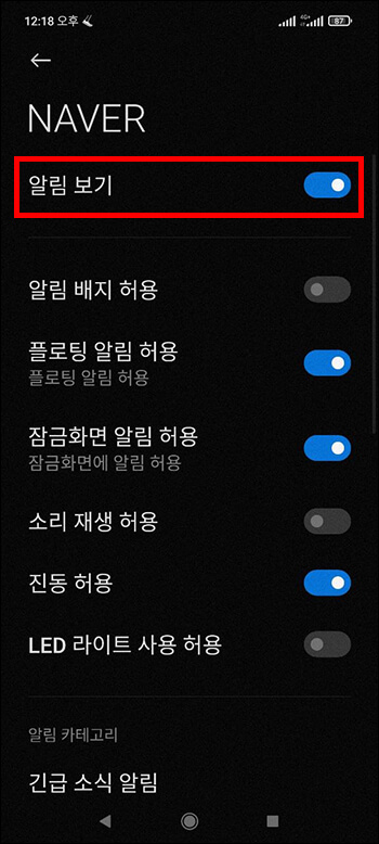 ⑧ 알림 보기로 선택한 후 다시 이전 화면으로 돌아갑니다.