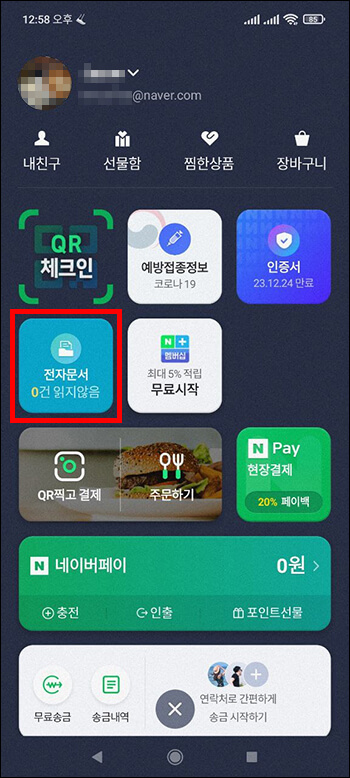 ② 하단으로 스크롤하면 전자문서 메뉴가 있습니다.