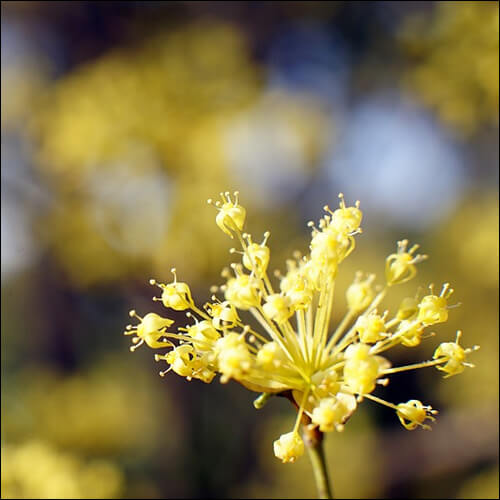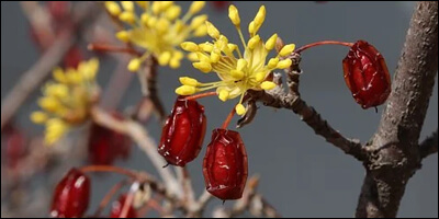 얼음이 녹기 전인 2월 하순부터 꽃이 피기 시작하는 산수유는 층층나무과에 속하며, 열매는 주로 약으로 쓰입니다. 달면서도 떫은맛이 나는 산수유는 예로부터 한약재료로 쓰이고 있습니다.