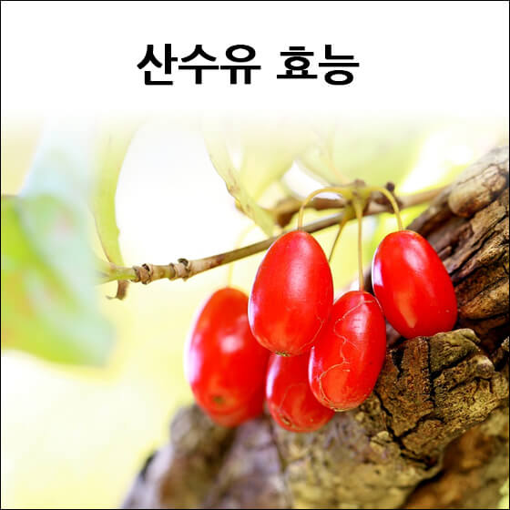 산수유를 먹어보면 신맛이 좀 강한 편인데, 이 신맛이 근육 수축을 도와주는 성분인 모로니사이드로 비뇨기계에 좋은 작용을 합니다. 산수유의 사포닌 성분은 방광 조절 능력을 강화시켜 여성의 요실금 개선에도 효과를 볼 수 있습니다.